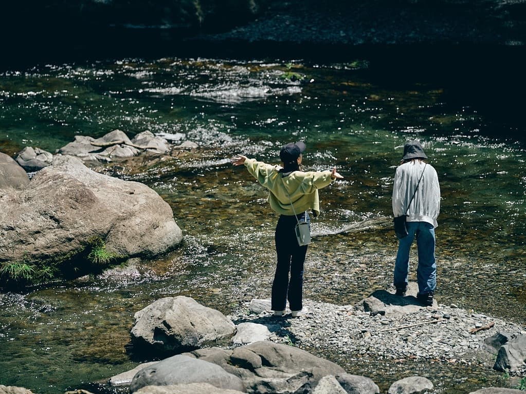 Travel upstream by private car, driving deep into Hinohara Village—the only remaining village in mainland Tokyo—surrounded by towering mountains and lush nature.